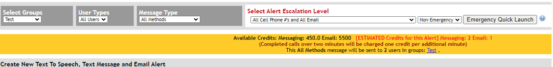 The client will be able to see how many messages will be used, as well as their balance available, before sending a message via the yellow bar within their Alert Screen. Once they approve the messages, the messages will be removed from their system.